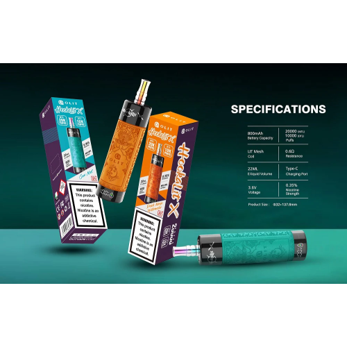พบกับ Olit Hookalit X 20000 เครื่องสูบไอแบบใช้แล้วทิ้งที่มีอายุการใช้งานยาวนาน สร้างขึ้นสำหรับผู้ที่ให้ความสำคัญกับพลังและรสชาติ ด้วยพัฟ 20,000 ชิ้น อุปกรณ์นี้ออกแบบมาเพื่อความบันเทิงที่ยาวนานขึ้น มอบประสบการณ์ที่ราบรื่นและน่าพึงพอใจตั้งแต่ต้นจนจบ