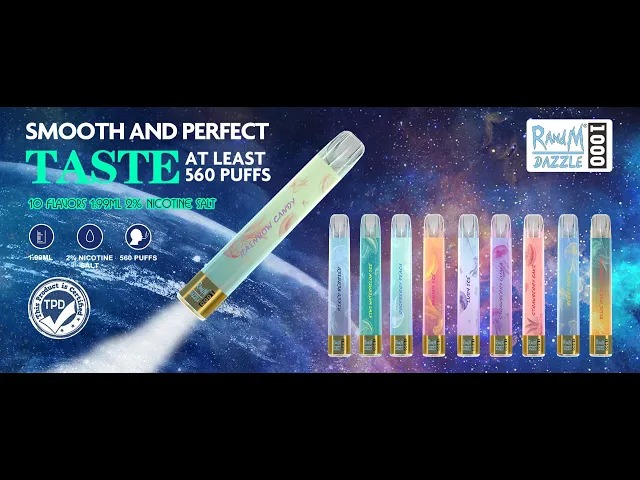 RandM Dazzle 1000 เป็นอุปกรณ์ vape แบบใช้แล้วทิ้งที่มีการออกแบบไฟ LED สีสันสดใส ประกอบด้วยน้ำเกลือนิค 2% 1.99 มล. และ vape อย่างน้อย 560 พัฟ มี 10 รสชาติให้คุณเลือก. ไฟ RGB ทำให้เป็นอุปกรณ์ที่ใช้แล้วทิ้งที่เจ๋งที่สุด