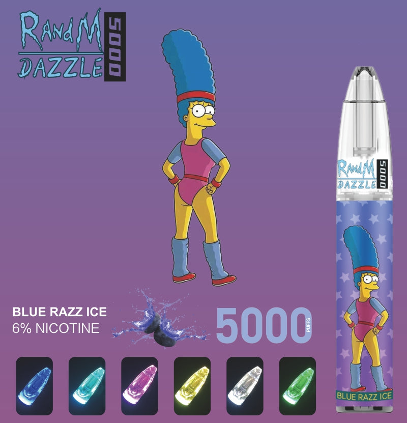 แรนด์เอ็ม แดซเซิล 5000 เป็นอุปกรณ์ vape แบบใช้แล้วทิ้งที่มีถังใสยอดนิยม มีไฟ RGB สีสันสดใส และสามารถรีฟิลได้ ประกอบด้วย น้ำเกลืออิเล็กทรอนิกส์นิค 0/2/3/5% ขนาด 10 มล. และสูบไอได้มากถึง 5,000 พัฟ มี 20 รสชาติให้คุณเลือก. ไฟ RGB ทำให้เป็นอุปกรณ์แบบใช้แล้วทิ้งที่เจ๋งที่สุด อีกทั้งยังมาพร้อมกับพอร์ต usb แบบชาร์จไฟได้ที่ด้านล่างของอุปกรณ์ ซึ่งรับประกันว่าคุณจะดื่มน้ำหยดสุดท้ายในถังและมีแสงส่องสว่างอยู่ตลอดเวลา
