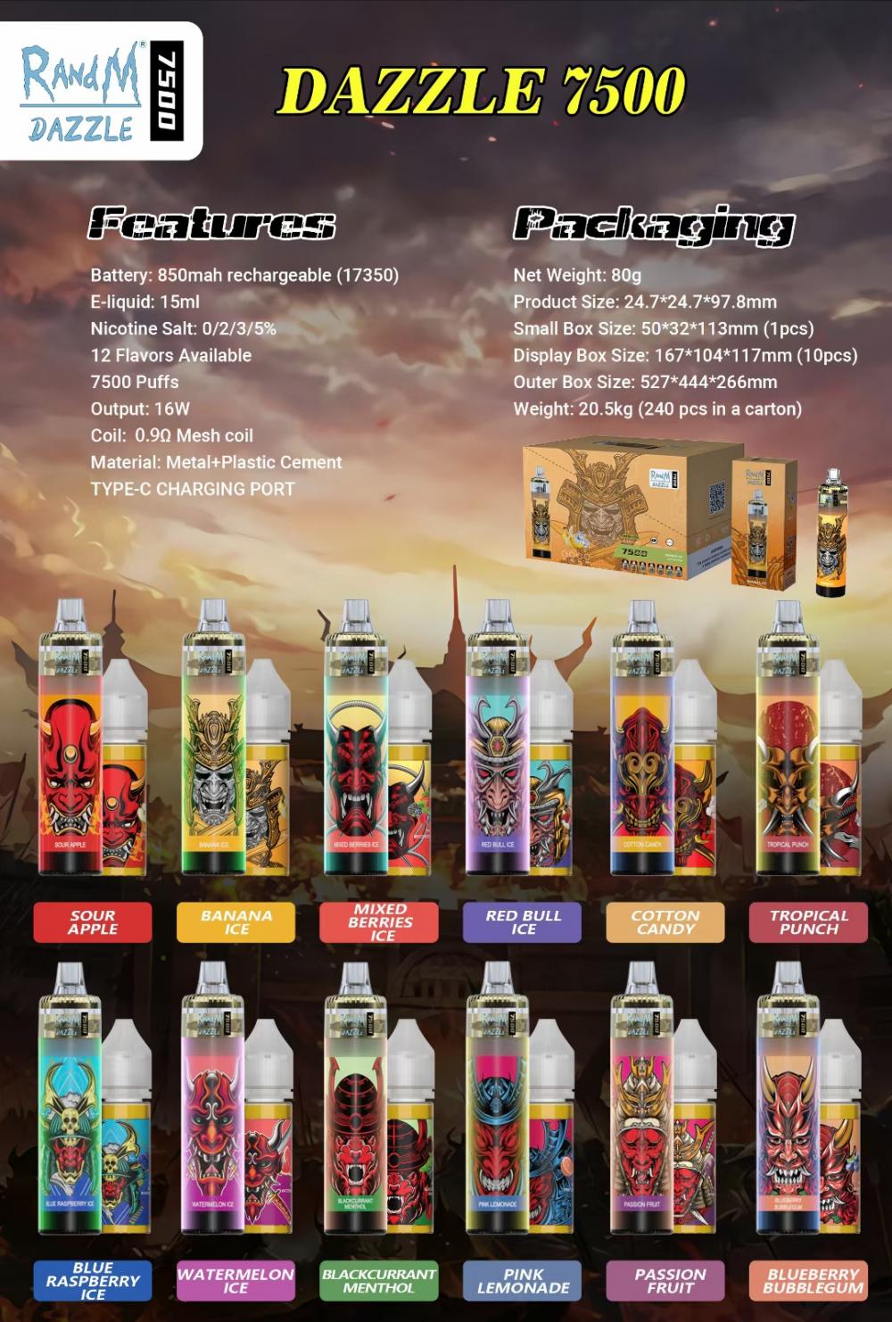 โมเดลหมายเลข: Randm Dazzle 7500puffs