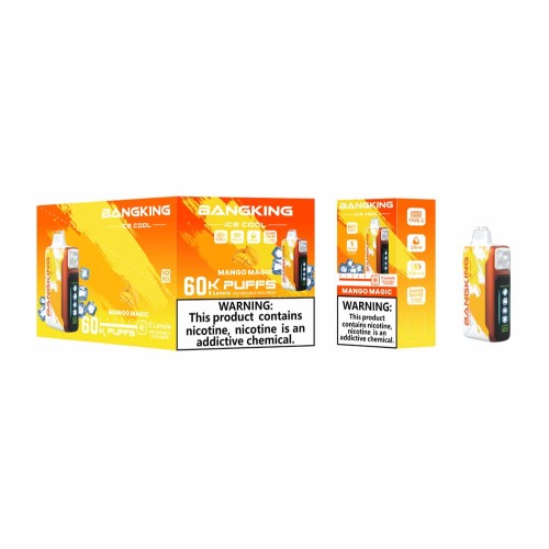 สัมผัสประสบการณ์การสูบไอในแบบของคุณด้วย Bang King Ice Cool 60k อุปกรณ์ปฏิวัติวงการนี้มีคุณสมบัติ ปรับความเย็นได้ 5 ระดับ รายแรกในอุตสาหกรรม ช่วยให้คุณปรับแต่งความรู้สึกเย็นฉ่ำเพื่อให้ได้ความเย็นที่สมบูรณ์แบบ เมื่อรวมกับความจุอันน่าทึ่งที่มากถึง 60,000 พัฟ คุณจะได้รับประสบการณ์เฉพาะตัวที่คงอยู่ได้นานกว่าสิ่งอื่นใด หน้าจอ LED อัจฉริยะช่วยให้คุณควบคุมได้เต็มที่ โดยแสดงการตั้งค่าของคุณได้ทันที ในขณะที่ คอยล์ตาข่าย อันทรงพลังช่วยให้มั่นใจได้ว่าทุกการดึงจะราบรื่นและมีรสชาติ